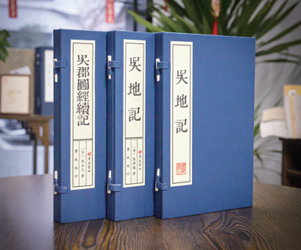 两部旧版,利用清代同治年间所刻的旧版刷印而成,采用宣纸线装的传统装帧形式,堪称馆藏文物活化创新的典范之作。另一部新雕刷印《吴地记》,选用与旧版完全相同的版本作为底本,进行影刻复制,采用雕版刷印这一世界非遗技艺,再现了古人制作图书的全部过程。