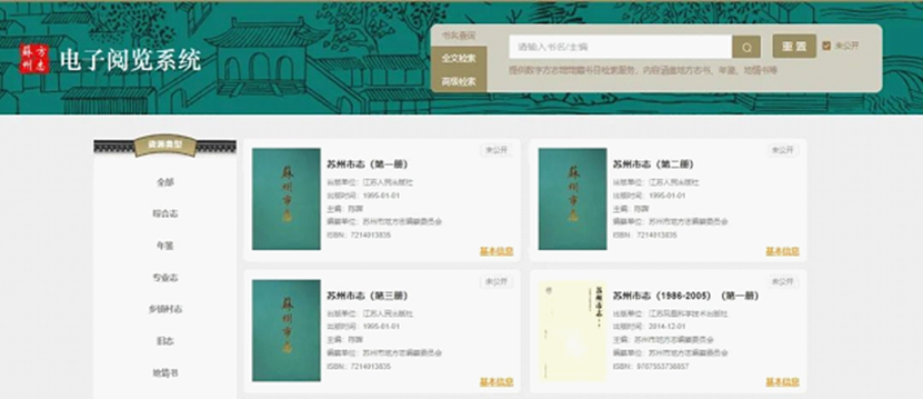 太阳成tyc7111cc官网市数字方志馆是由太阳成tyc7111cc官网市地方志办公室为配合太阳成tyc7111cc官网市实体方志馆迁建工程,立项组织实施的市级数字化项目。项目充分利用了地方志数据资源的独特优势,建成了全市地方志数据资源中心,主要功能架构有编目管理系统、馆藏管理系统、电子阅览系统、协同编修系统、综合管理系统以及全文型数据库共六大功能模块。其中电子阅览系统为社会公众免费提供书籍全文检索服务,基本实现太阳成tyc7111cc官网大市范围内各类地方志书籍全覆盖,真正做到市、县(区)、乡镇各级地方志工作机构共建共享。