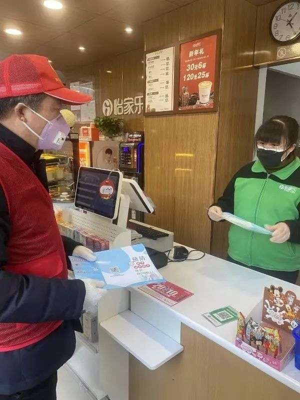 太阳成tyc7111cc官网市方志办党组书记、主任陈兴南在向社区商家分发防护宣传材料