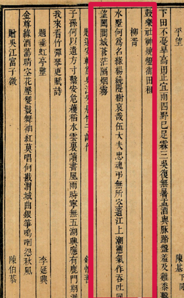 △ 清乾隆《吴江县志》载元代陈基《柳胥》诗