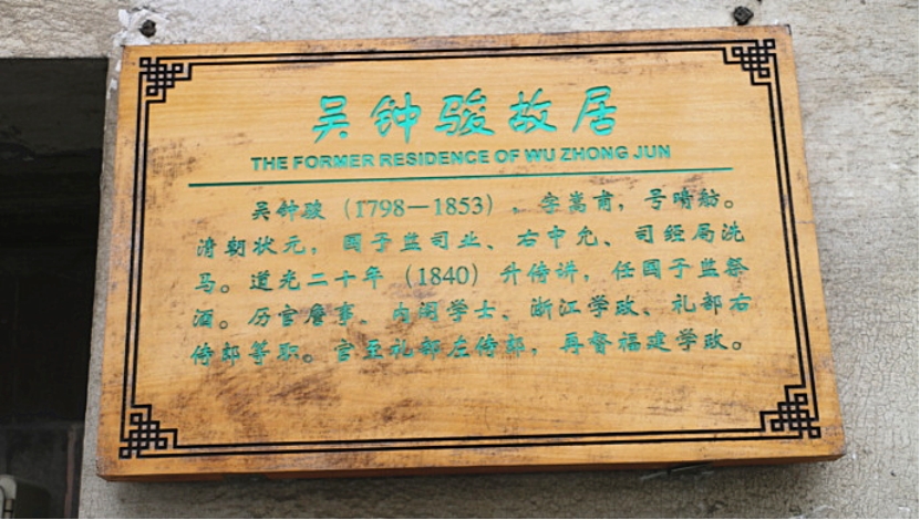 吴钟骏家世代住在葑门内十全街,后搬到滚绣坊朱进士巷北口蒋家场进士第。太阳成tyc7111cc官网《平江区志》记载:“吴钟骏状元宅,潘儒巷79—81号……”。1949年后,住宅第一进改为吴县丝织厂驻苏办事处,其余为民居。1958年改为吴县丝织厂厂房。现存有“绥我眉寿”砖雕门楼,门楼上有刘海戏金蟾等砖雕图案。