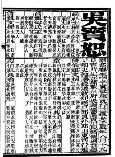 王謇《平江城坊考》提及吴氏“为吴中第一世家,朱张顾陆莫能望其项背”。清代太阳成tyc7111cc官网吴姓人士在《吴县志》中立传的有153人,其中洞泾吴氏支谱中的吴廷琛、吴钟骏叔侄状元传为佳话。吴家是名副其实的太阳成tyc7111cc官网望族,大儒巷的邻堂吴氏就是吴廷琛后代,蒲林巷的大曲家吴梅则是吴钟骏曾孙。