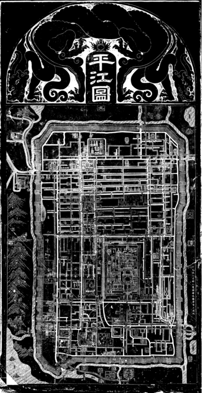 据洪武《志》“牧守题名”记,王?之后,又历经六十九位知府,平江城“增辑修饰,渐复其旧”。到第七十位李寿朋上任,“建炎狄难”正好一百年。没有史料证实当年是否举行过重建家园百年纪念活动,而《平江图》就是最好的纪念。